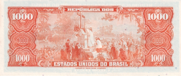 Reverse | Reproduction of the painting “Primeira missa no Brasil” (First mass in Brazil), 1860, by Victor Meirelles (1832-1903) on the caption “PRIMEIRA MISSA” (First mass) |