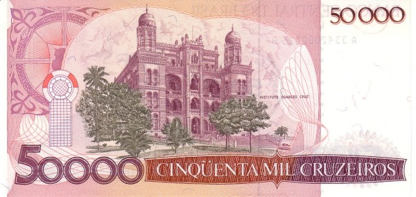 Reverse | View of the main building of the Oswaldo Cruz Institute, in Rio de Janeiro, built by the honoree. |