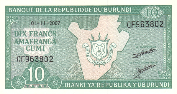 Obverse | Arms, outline of Burundi |