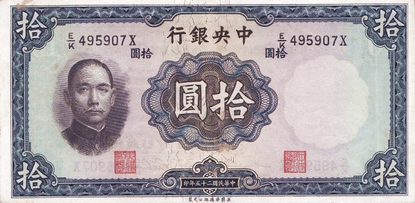 China P-218d / 10 Yuan 1936 – UNC