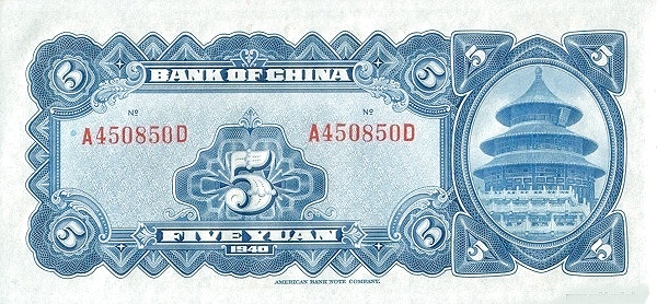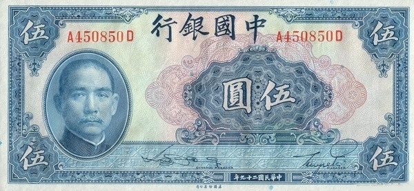 China P 84 / 5 Yuan 1940 – aUNC