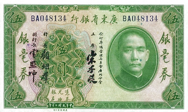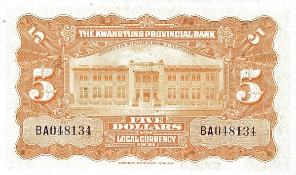 Reverse | First building of the Kwangtung Provincial Bank (built in 1914), co-founded by the Kuomintang and the Communist Party. The building was renamed to Kwangtung Central Bank by Sun Yat-sen on the 15th of August 1924 and in January 1932 renamed again to the Kwangtung Provincial Bank. It was used by the People’s Bank of China, Guangzhou Branch. Today it houses the Industrial and Commercial Bank of China, Guangzhou Branch and is located at the north bank of Pearl River (Zhujiang), 193 Middle Road, along the Yangtze River Road in Yuexiu District, Guangzhou |