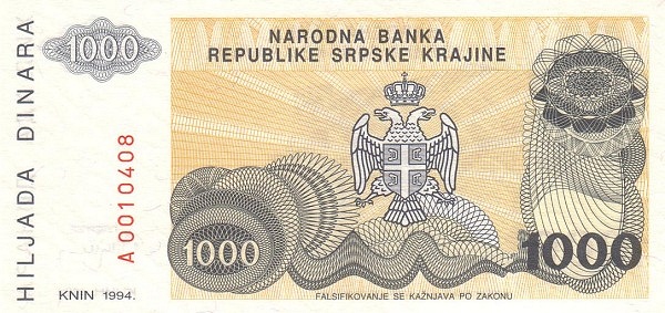Issued by | Narodna Banka Republike Srpske Krajine |