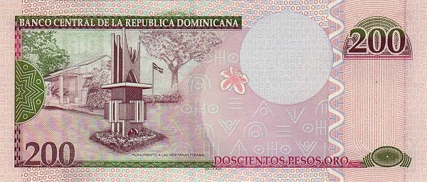 Obverse | The Mirabal Sisters – four Dominican political dissidents who opposed the dictatorship of Rafael Trujillo. Depicted are the three sisters, Patria Mirabal, Minerva Mirabal and Maria Teresa Mirabal, who were assassinated in 1960. Seal of the Central Bank of the Republic. A butterfly symbolising the Mirabal sisters. Blossoms of the Mahogany Tree, La caoba (Swietenia mahagoni), formerly (1957-2011) the national flower and now the national tree of the Dominican Republic. |