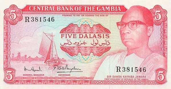 Obverse | Sailing boat. President Sir Dawda Kairaba Jawara – First President of Republic of the Gambia |