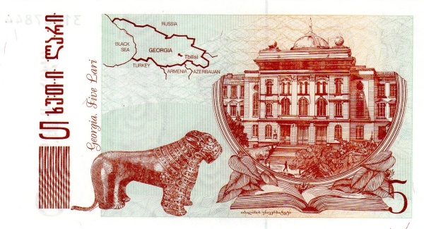 Reverse | Golden statue of a lion (2300-2000 B.C. found in a tomb in the Alazani valley) State University, Tiflis/Tbilissi |
