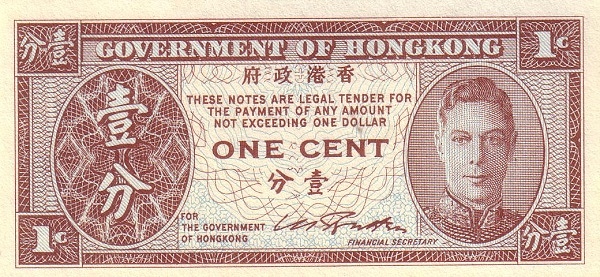 Hong Kong P-321 / 1 Cent 1945 – UNC