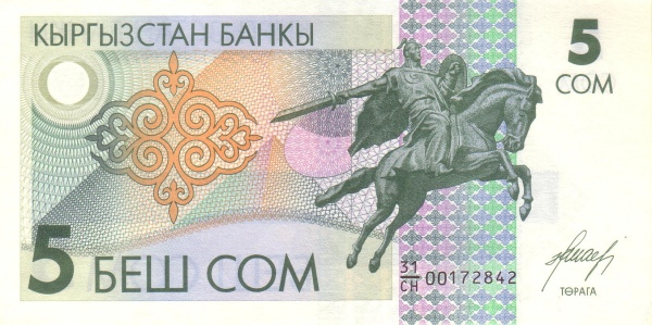 Kyrgyzstan P 5 / 5 Som 1993 – UNC