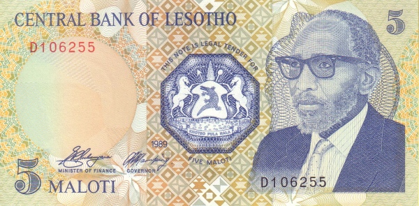 Lesotho P-10 / 5 Maloti 1989 – UNC