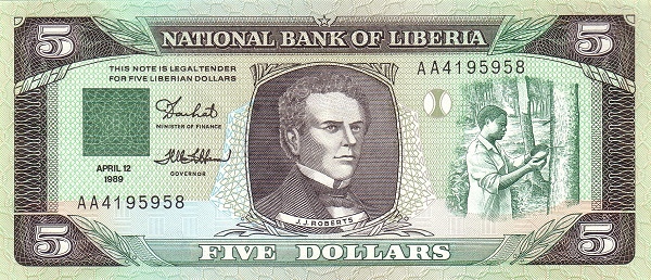Liberia P-19 / 5 Dollars 1989 – UNC