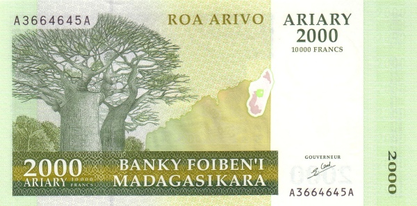 Madagascar P-83 / 2,000 Ariary (10,000 Francs) 2003 – UNC