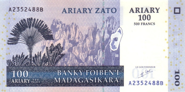 Madagascar P-86a / 100 Ariary (500 Francs) 2004 – UNC