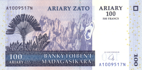 Madagascar P-86b / 100 Ariary (500 Francs) 2004 – UNC