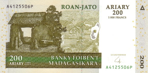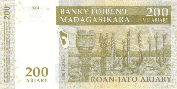 Madagascar P-87b / 200 Ariary (1,000 Francs) 2004 – UNC