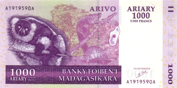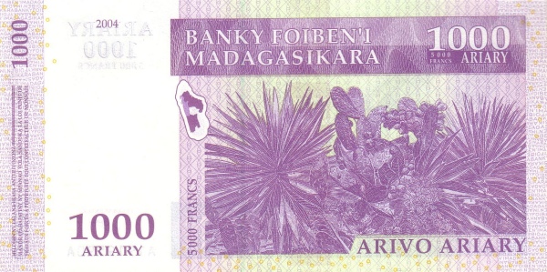 Madagascar P-89a / 1,000 Ariary (5,000 Francs) 2004 – UNC