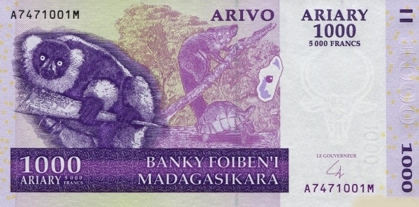 Madagascar P-89b / 1,000 Ariary (5,000 Francs) 2004 – UNC