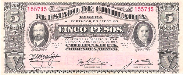 Mexico P-S532A / 5 Pesos 1915 – aUNC
