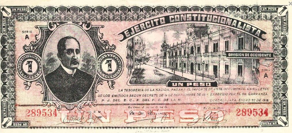 Issued by Ejército Constitucionalista – División de Occidente, Guadalajara