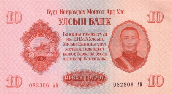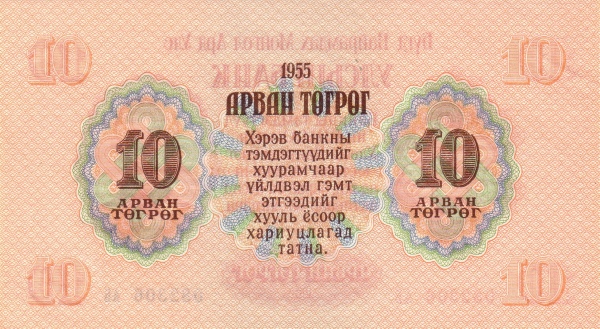 Mongolia P-31 / 10 Tugrik 1955 – UNC