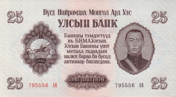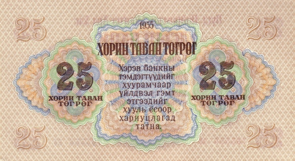Mongolia P-32 / 25 Tugrik 1955 – UNC
