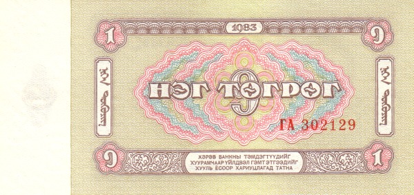 Mongolia P-42 / 1 Tugrik 1983 – UNC