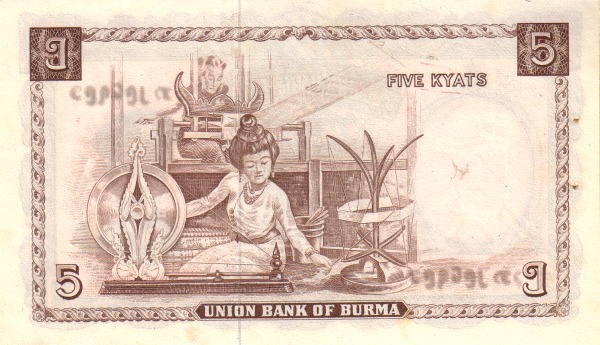 Myanmar (Burma) P-47 / 5 Kyats 1958 – UNC
