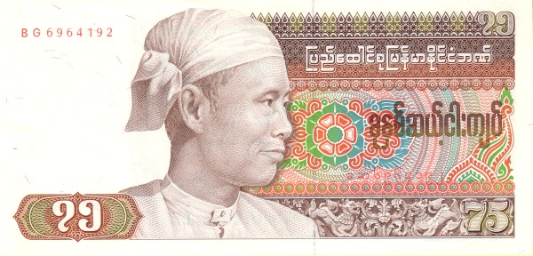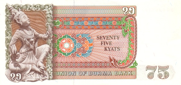 Myanmar (Burma) P-65 / 75 Kyats 1985 – UNC