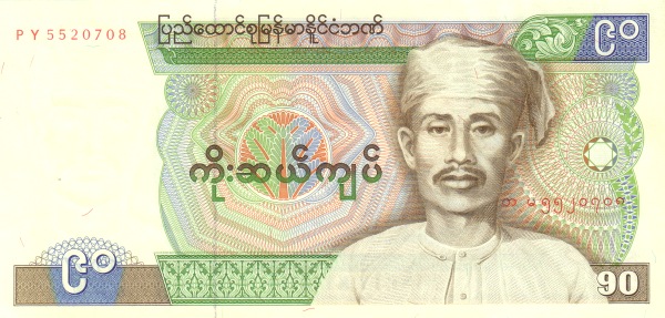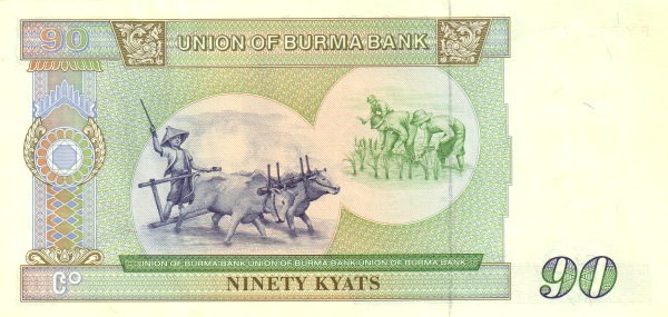 Myanmar (Burma) P-66 / 90 Kyats 1987 – UNC 15/10/202215/10/2022 costi80 £6.00 Myanmar (Burma) P-66 / 90 Kyats 1987 – UNC Myanmar (Burma) P-66 / 90 Kyats 1987 - UNC quantity Add to cart Category: Myanmar Description Description Issued by Union of Burma Bank Issue ND (1985-1987) “Odd Values” Issue Size 164 x 76 mm Printer Security Printing Wazi (Myanmar) – CBM Watermark Saya San Obverse Saya San Reverse Farmer with oxen, planting rice Related products Myanmar (Burma) P-64 / 45 Kyats 1987 – UNC £3.50 Add to cart Myanmar P-69 / 1 Kyat 1995 – UNC £1.70 Add to cart Myanmar (Burma) P-15b / 5 Rupees 1942-1944 – aUNC £7.50 Add to cart Myanmar (Burma) P-14a / 1 Rupee 1942 – UNC £3.30 Add to cart