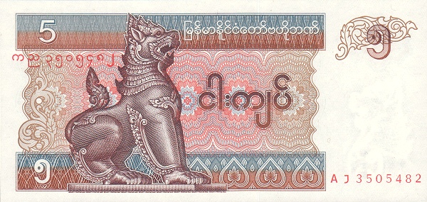 Myanmar P-70b / 5 Kyats 1995 – UNC