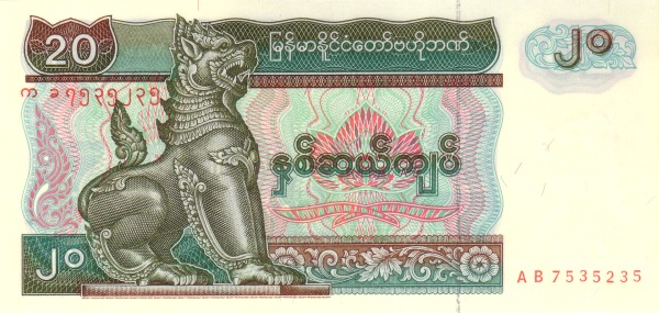 Myanmar P-72 / 20 Kyats 1994 – UNC