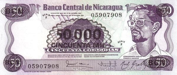 Nicaragua P-148 / 50,000 Cordobas 1987 – UNC