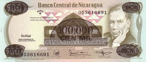 Nicaragua P-149 / 100,000 Cordobas 1987 – UNC