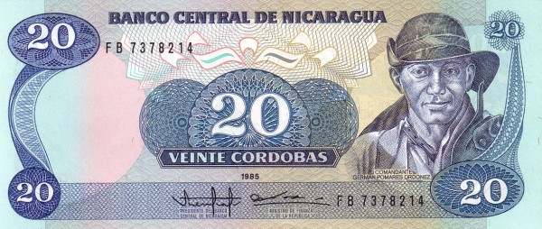 Nicaragua P-152 / 20 Cordobas 1985 – UNC