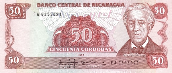 Nicaragua P-153 / 50 Cordobas 1985 – UNC