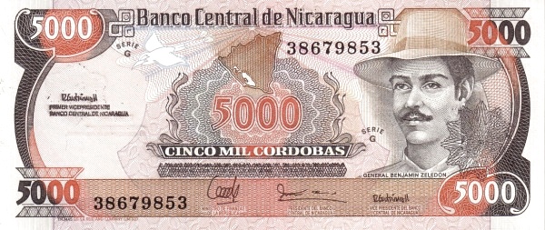 Nicaragua P-157 / 5,000 Cordobas 1988 – UNC