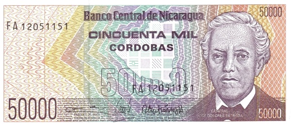 Nicaragua P-161 / 50,000 Cordobas 1989 – UNC