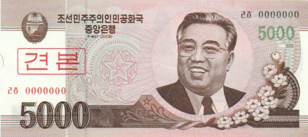 North Korea P-66s / 5,000 Won 2008 (2009) – UNC (specimen)