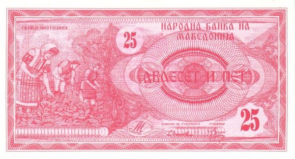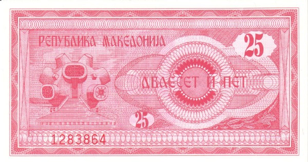 North Macedonia P 2 / 25 Denari 1992 – UNC