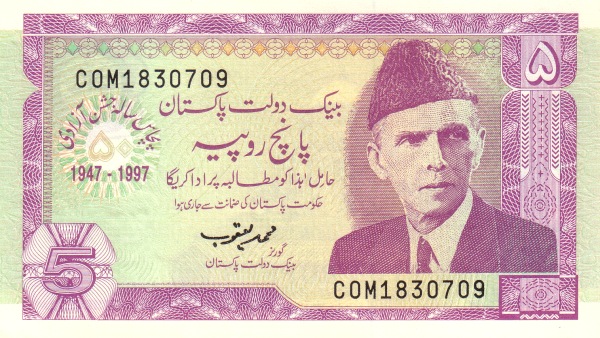 Pakistan P-44 / 5 Rupees 1997 – UNC