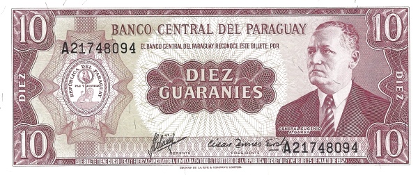Paraguay P-196b / 10 Guaranies 1963 – UNC