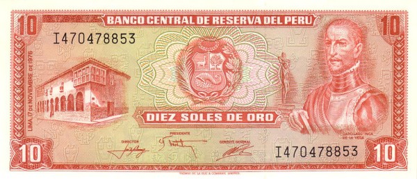 Peru P-112 / 10 Soles de Oro 1976 – UNC