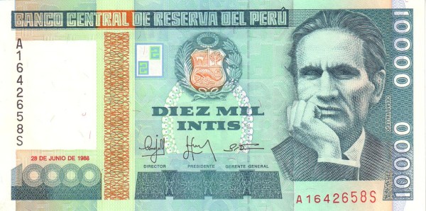 Peru P-140 / 10,000 Intis 1988 – UNC