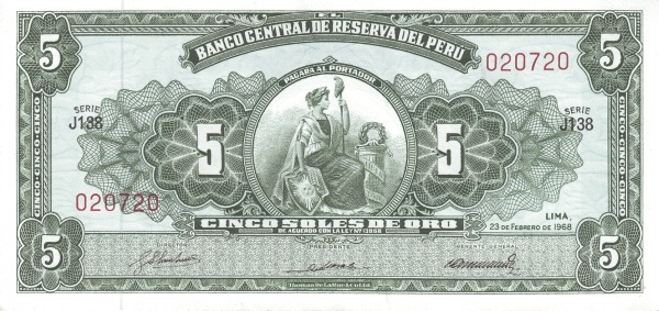 Peru P 83 / 5 Soles de Oro 1968 – UNC
