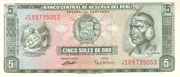 Peru P 99b / 5 Soles de Oro 1970 – UNC