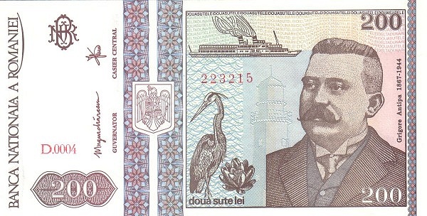 Obverse | Grigore Antipa, ferry on Danube River, heron, old Lighthouse of Sulina (North Pier) |