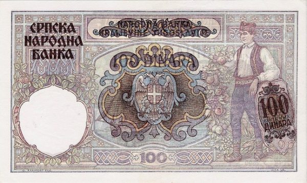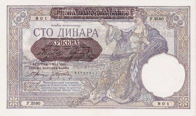 Serbia P-23 / 100 Dinara 1941 – aUNC