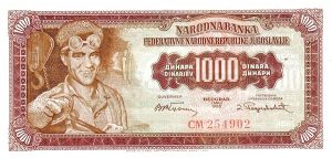 Yugoslavia P 71b / 1,000 Dinara 1955 – UNC