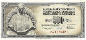 Yugoslavia P-109 / 500 Dinara 1991 – UNC