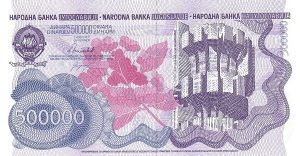 Yugoslavia P 98 / 500,000 Dinara 1989 – UNC