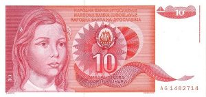 Yugoslavia P-103 / 10 Dinara 1990 – UNC